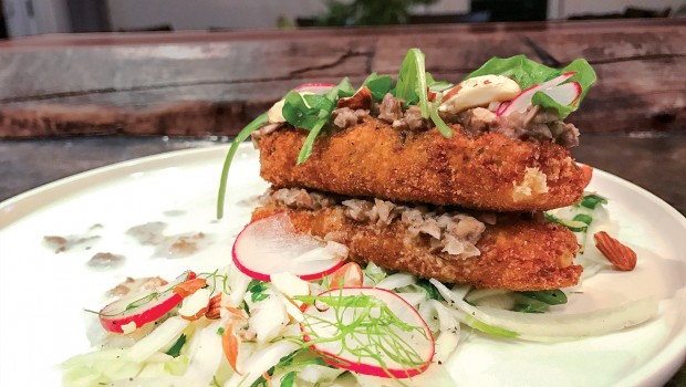 Burger à la Tomme de Grosse-Île et salade d’asperges
